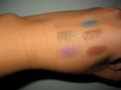 So far I'm really liking Snatch because it looks great as an all over eyelid color and it's shimmery, but not too shimmery for my liking. Mildew is looking a bit light and I really wanted a dark emerald green so I'm still going to have to experiment with it to get it darker either by packing the color on or getting a dark base. I haven't tried Flash or Painkiller yet. Smog and Toasted are really pretty. They're nothing special though, because you could find similar colors at a drugstore for much cheaper, but the texture and pigmentation is important to me so I love them. I have a feeling that I'm going to gravitate towards these shadows on a daily basis. I've never even hit pan on any shadows, but since these are a bit smaller, it might just happen.